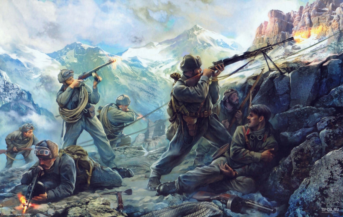 Картинка из Интернета напомнила мне мои старые стихи, которые написал когда-то о войне в Приэльбрусье: Треск “шмайсеров” и пулеметов. Смертельный веер пуль и гильз. К чему баксанские красоты? Когда целует снег пехота — Печатью лиц в ...