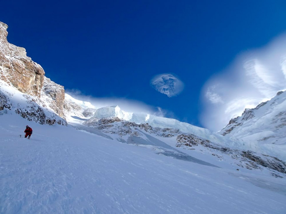 Мы не ожидали такого сильного снегопада, поэтому оставили снаряжение в трещине на 5700м. Мы были вынуждены поставить там палатку, другого варианта просто не было