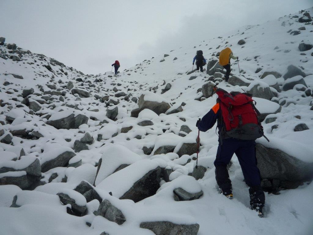 Новости от группы «Кошки На Ботинки». Сегодня мы поднялись на приют Национальный парк. Заселились, пообедали, и во второй половине дня отправились на снежно-ледовые занятия в район Приюта 11. Освоили навыки самозадержания на снежном склоне с помощью ледоруба. А также перемещение по верёвочным перилам. Погода сегодня нас не балует, туман, изредка срывается снег. Вечером у группы был просмотр фильмов о горах и интеллектуальные игры.