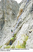 Первую станцию делаем обвязав большой скальный выступ . Выход за перегиб немного затруднён, скальный гребень в этом месте очень узкий и достаточно высокий. Сначала приходится немного подняться, перелезть через гребень и вывеситься на ...