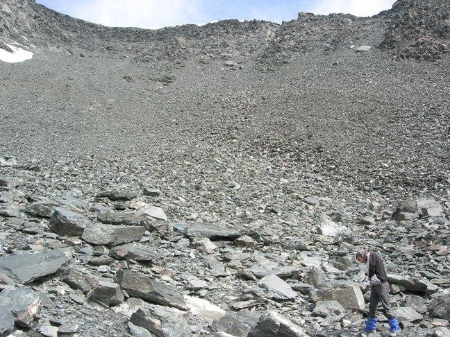 Не стал подходить вплотную к стене, чтобы не придавило, если там наверху отвалится кусок льда. Выбрал камень с мульдой, расширил её немного, построил стенки, расстелили коврик. Лагерь готов!